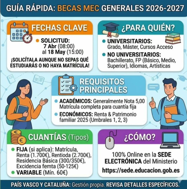 BECAS MEC 2026/2027 Plazo: 7 abril - 18 mayo |